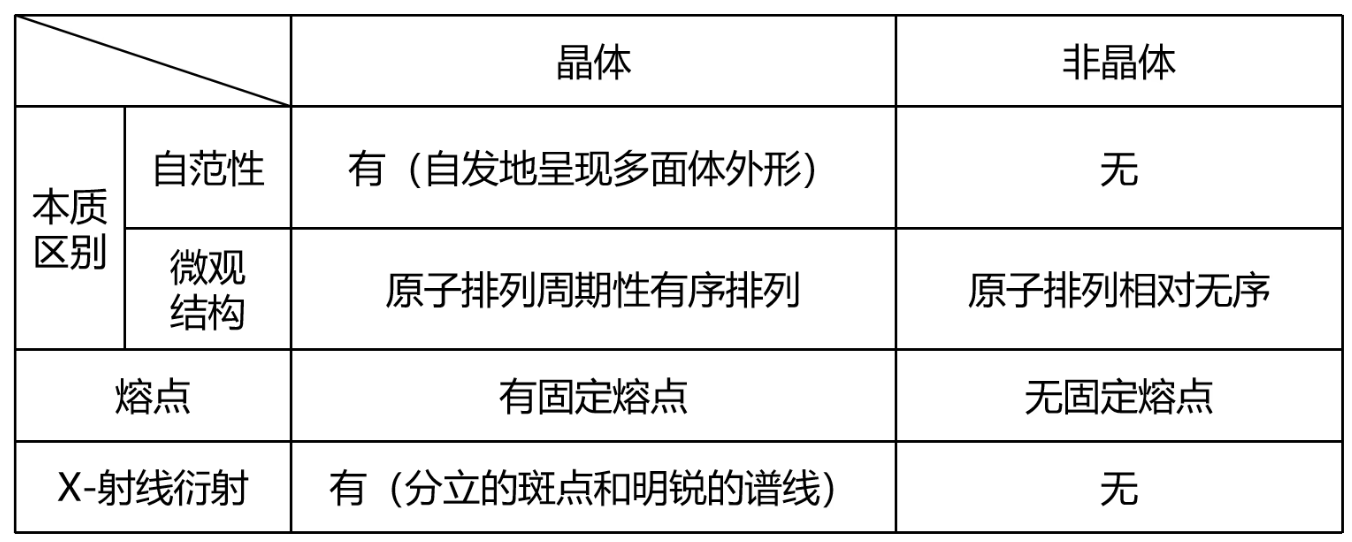 非晶体:内部微粒排列呈相对无序状态,不具有规则几何外形的固体
